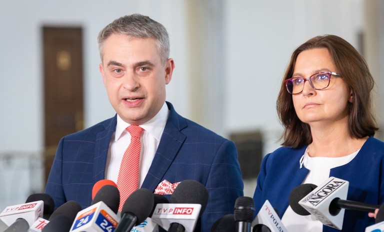 - Zwracamy się z wnioskiem do prezydenta Andrzeja Dudy o pilne zarządzenie wyborów do Sejmu i Senatu – oświadczyli posłowie Agnieszka Dziemianowicz-Bąk i Krzysztof Gawkowski podczas konferencji ...